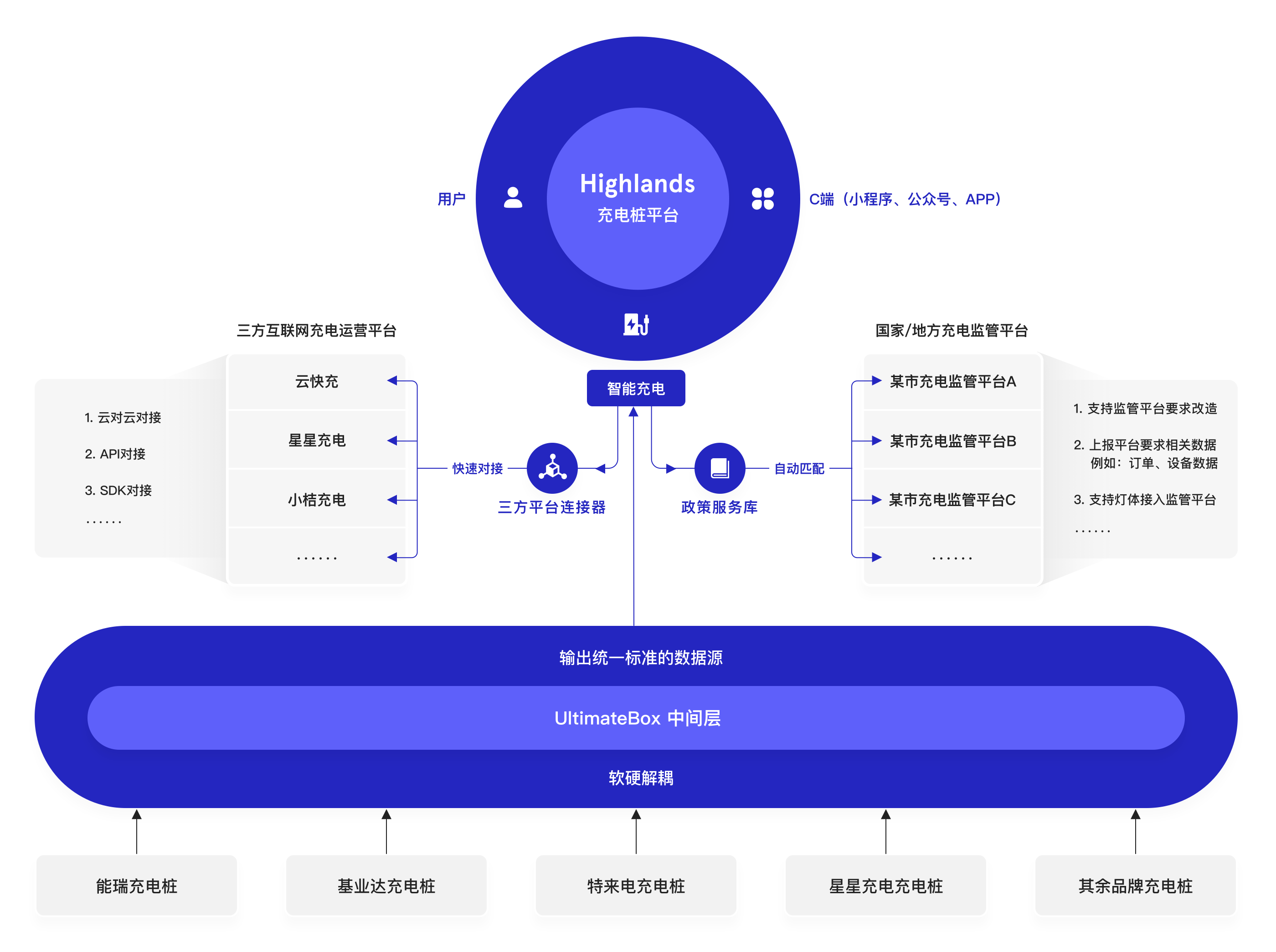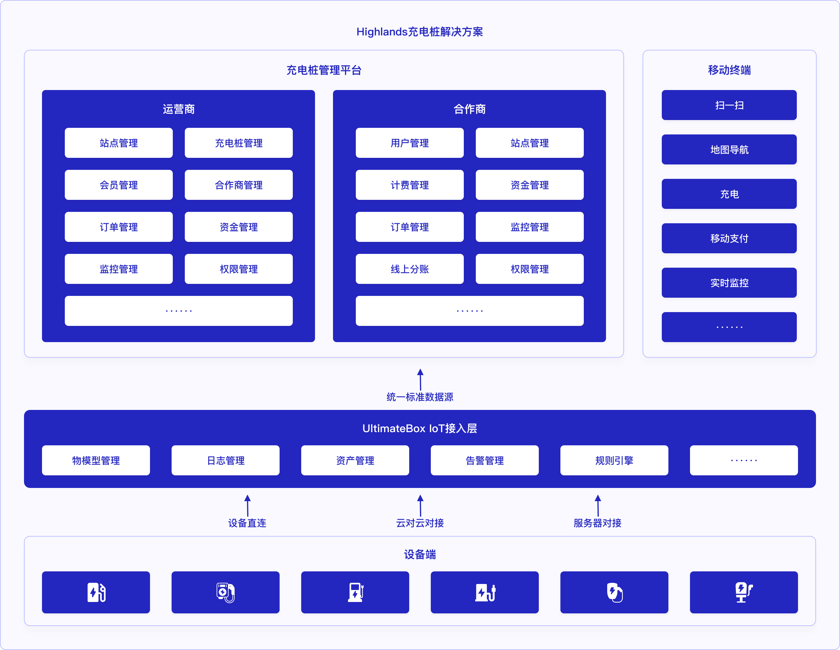 充电桩类型多、部署分散、数量庞大,不同的充电设施绑定不同的云平台, 随着充电桩陆续启用并采集上报业务数据,充电运营商需配套具有海量设备连接和高并发处理能力的接入平台。